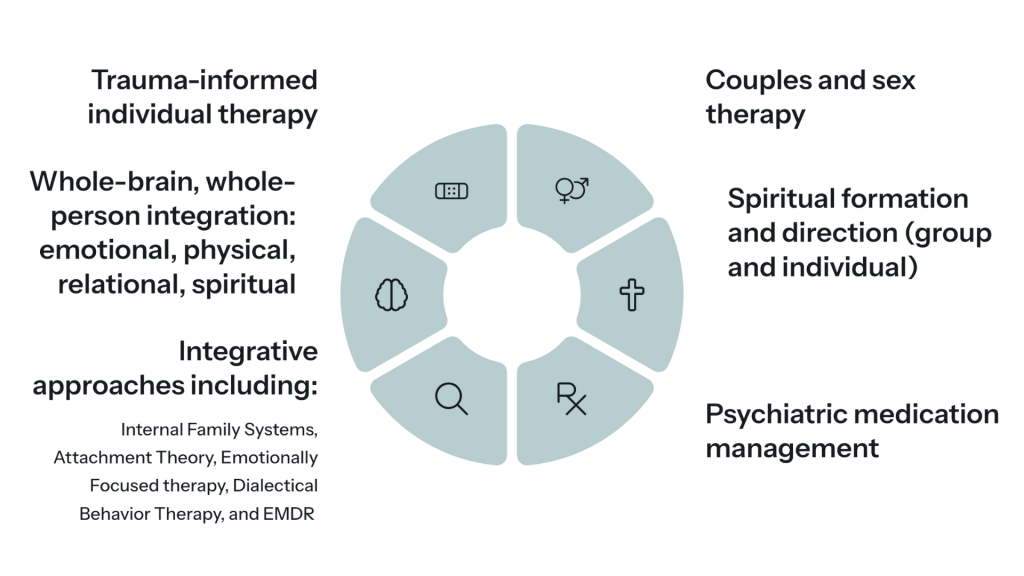 Healing is more than talking through a problem—it’s a process that engages your emotional, physical, relational, and spiritual health. We approach therapy through a whole-person lens, helping you connect the dots between your mind, body, soul, and relationships so change lasts beyond the session.